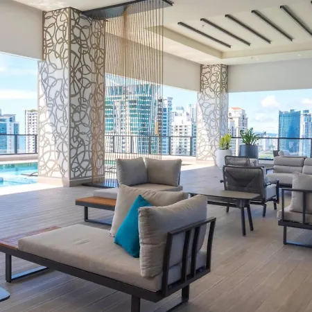Villan Deluxe Loft With City And Ocean View Panama City med 2 sovrum, som ligger inom 3 km från Panama Viejo, har en privat pool med bastu.